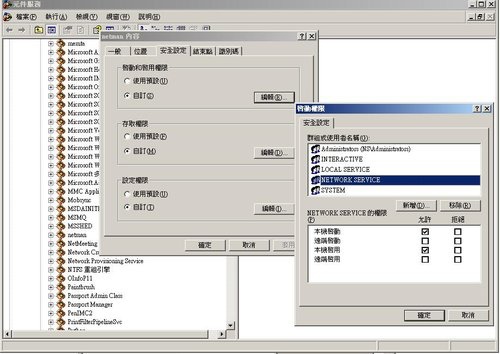 4、再點擊“安全設定”--"啟動和啟用權限“--"編輯",在用戶列表中添加"NETWORK SERVICE",並給予本地啟動和激活權限,保存退出後,就不會再有10016的錯誤事件了。
